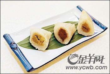 红茶香橙粽今年的粽子的个头向两极发展,大的特别厚实,小的特别精巧,放在一起来看,感觉特别明显。粽子的变化在配料,配料有五谷杂粮、水果、花果、茶叶等,都颇受女士的追捧。
