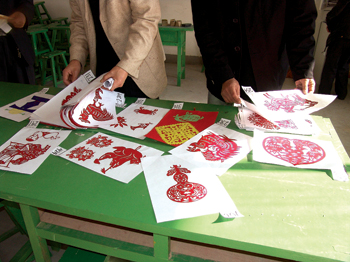 徒 延川县教育局已选定当地中小学进行剪纸教育试点。学生们的作品看上去有模有样。