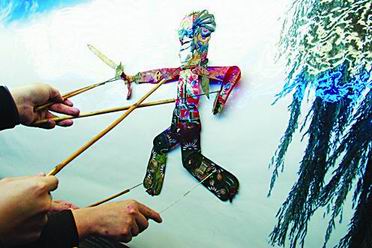 在半透明的驴皮上雕刻的影人色彩鲜艳、形象生动
