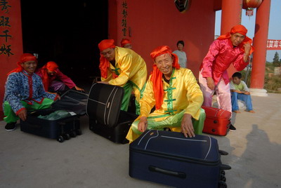 和合队队员正在高兴地整理行装。