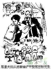 1898年底,他们终于从沥青铀矿中提炼出了两种新的放射性元素。他们命名一种新元素为“钋”(Polo—nium)以表示居里夫人对她的祖国波兰(Poland)的敬意,另一种新元素命名为“镭”(Radium)。