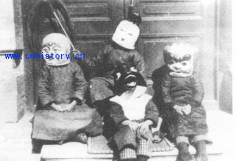 图为黄氏兄妹童年演戏一景,右起宗英、宗江(后)、宗洛、宗淮