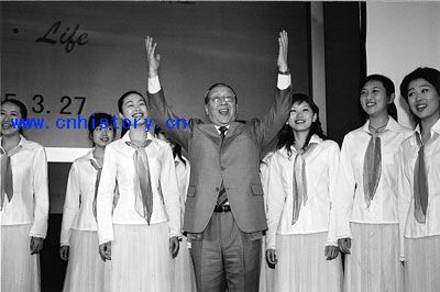 在深圳大学,李岚清应邀与合唱团的同学们同台演唱了由他自己作词作曲的《蓓蕾之歌》 网易历史http://news.163.com/history/