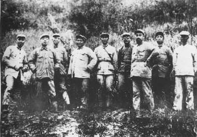 长征到达陕北时的周恩来。 1933年12月,周恩来和红一方面军领导人在福建建宁合影。