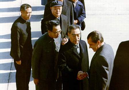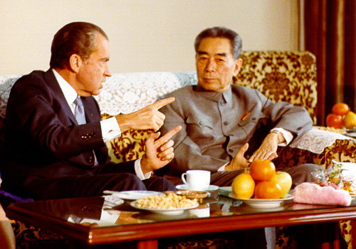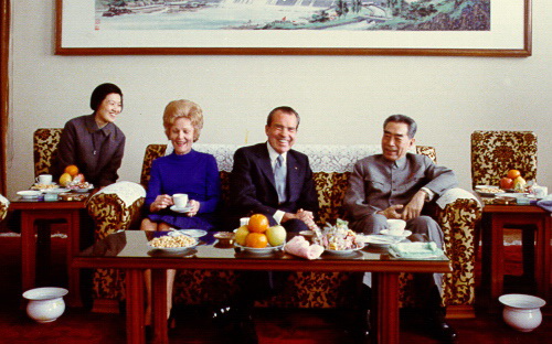 尼克松夫妇与周总理相谈甚欢