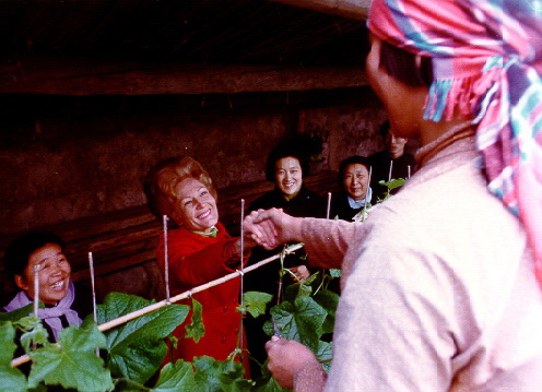 尼克松夫人与农民握手