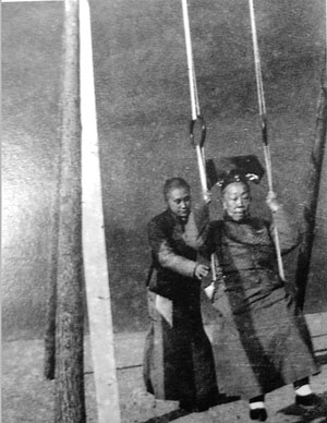 先后服侍过慈禧、隆裕和端康的老宫女在玩秋千