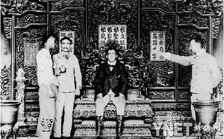 进入皇宫的八国联军官兵在乾清宫内坐在龙椅上合影留念 供图/时代印象