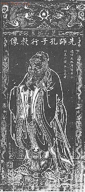 孔子创立的儒家学派影响中国社会两、三千年之久,并且远播国外。但是他生前并没有被统治者所重视,他创立的儒家学说也未受到重视。汉代以后,统治阶级对孔子思想不断改造,使儒学成为中国的正统思想,在各朝代皆受尊重。反映孔子的画像,最早的是东汉元嘉元年(151)武梁祠石刻中的《孔子见老子图》。北宋时,曲阜孔庙增加了临摹的相传晋代顾恺之绘孔子随行像、