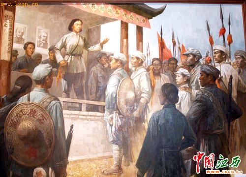 井冈山第一位女红军:贺子珍。贺子珍在万人大会上讲话(油画)