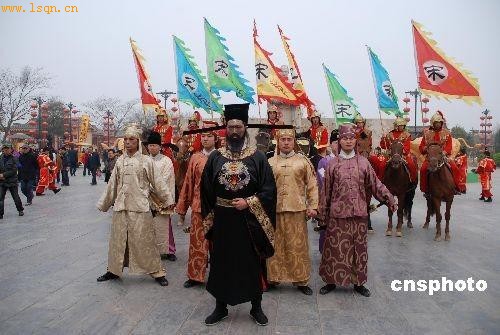 4月4日上午,身着宋朝衣服的民众参加中国开封2009清明文化节开幕式。当日,以“传承文明、拥抱春天”为特色的中国开封2009清明文化节在开封清明上河园开幕。 中新社发 王中举 摄