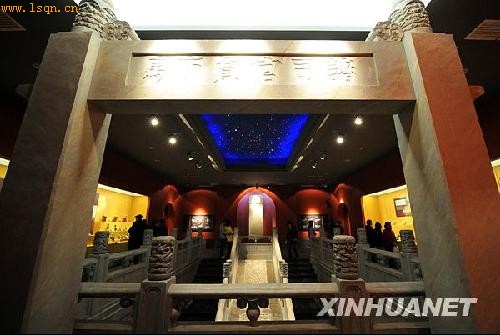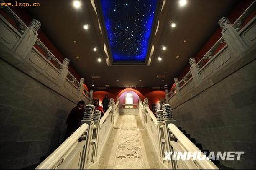 2月18日,人们在明孝陵博物馆新馆内的模拟地宫入口处参观。