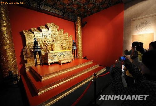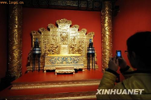 2月18日,人们在明孝陵博物馆新馆内参观明朝开国皇帝朱元璋登基的“宝座”。新华社记者 孙参 摄