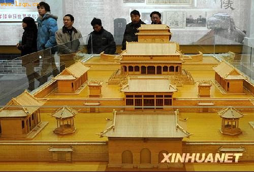 2月18日,人们在新馆内参观明孝陵地面建筑模型。新华社记者 孙参 摄