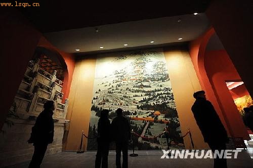 2月18日,人们在明孝陵博物馆新馆内的大型漆画前参观。新华社记者 孙参 摄