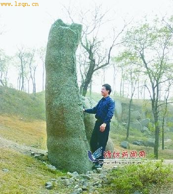 据悉,今年7月,山东大学美术考古研究所所长、博士生导师刘凤君教授曾来到这里,经过详细考察后,认为崇山是远古时代的祭台遗址,而这些巨石,是巨石崇拜时期的遗物,也是父系氏族社会进入盛期、男性生殖崇拜时期的遗物。在世界范围内,巨石崇拜时期留下的遗物,多属自然石崇拜。像这样巨型的“石祖”艺术聚集于一个祭坛,实属世界奇迹。后来,刘教授曾多次来这里考证,认为昌乐地属东夷文化区,这些巨石是东夷文化盛期的产物,距今已有4000多年的历史!(来源:潍坊新闻网 记者郭保礼)