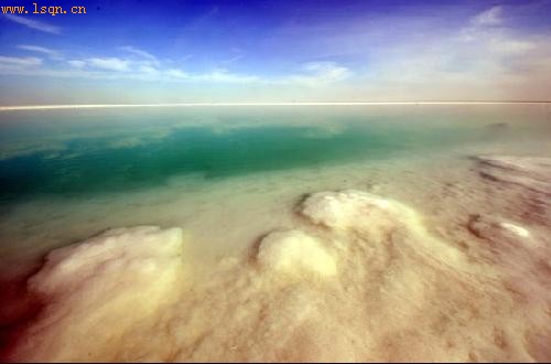 新疆罗布泊一处巨大的盐田卤水湖。