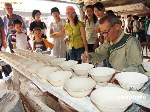 2008年“五一”期间,江西省景德镇市陶瓷文化博览区推出国家非物质文化遗产“传统手工制瓷技艺”表演,各地游客们可以体验拉坯、画坯等传统手工制瓷技艺,感受陶瓷文化。 中新社发 石卫明 摄