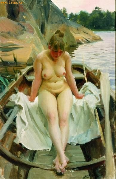 安德烈-佐恩无疑是瑞典最有名的画家。他出生在小城摩拉,12岁进入斯德哥尔摩艺术学校学习雕塑,20岁便有水彩画杰作《着丧服的妇女》问世。他遍游欧洲,并到土耳其和大洋彼岸的美国观光游览异国风光。1888年,佐恩在巴黎开始油画创作,他这一时期追求自然主义风格,注重色彩和光线,但并没有关注当时流行的印象主义。据伊尔瓦?诺斯说,19世纪八十年代是北欧艺术大变革的时期,斯堪的纳维亚的画家纷纷涌向巴黎,彻底摆脱了半岛传统美术教育的束缚。但是,佐恩最终还是选择了放弃巴黎,放弃了各国艺术家杂处的世界主义而回到了自己的家乡,他画家生涯的最后这一阶段的画风也随之回到了自然和故乡的氛围。他这一时期的作品对他的挚友——西班牙画家索罗拉,尤其是对其巴伦西亚海滩画的创作产生了重要的影响。