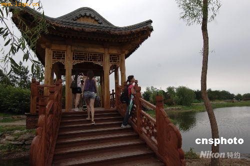 中新社北京七月二十九日(巫菁)为迎奥运,二十九日上午圆明园九州景区正式开放,这是三百零一年来圆明园九州景区首度开放,吸引众多中外游客前来游览。
