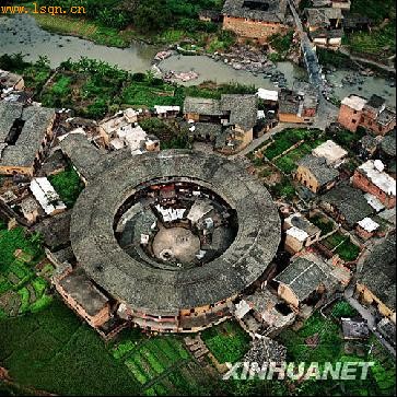 分布在福建西部和南部崇山峻岭中的福建土楼,以其独特的建筑风格和悠久的历史文化著称于世。其形状有圆形、方形、椭圆形、弧形等。福建土楼产生于宋元时期,经过明代早、中期的发展,明末、清代、民国时期逐渐成熟,并一直延续至今。福建土楼是世界上独一无二的山区大型夯土民居建筑,创造性的生土建筑艺术杰作。福建土楼依山就势,布局合理,吸收了中国传统建筑规划的“风水”理念,适应聚族而居的生活和防御的要求,巧妙地利用了山间狭小的平地和当地的生土、木材、鹅卵石等建筑材料,是一种自成体系,具有节约、坚固、防御性强特点,又极富美感的生土高层建筑类型。近年来,以福建永定、南靖等地为代表的福建土楼得到进一步修缮保护,并申报世界文化遗产。