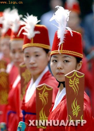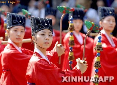 在韩国首都首尔,传统舞蹈剧团在纪念孔子的活动中表演。 新华社/法新