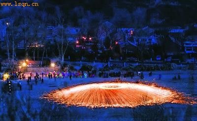 每年正月十五在当地都要进行“抡花”表演,表演时整个场地中央金花四射、流光溢彩,高潮时形成一座光环,就像是一个巨大的金钵倒扣在地上发出万丈光芒,景象壮观。