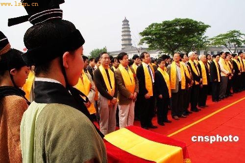 “祭墨大典”仪式上,1500百余位嘉宾和四千余名群众向“科技之父”墨子三鞠躬。