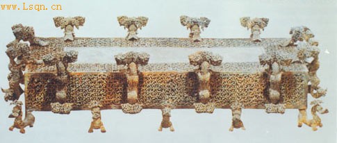 我国的失腊法至迟起源于春秋时期。河南淅川下寺2号楚墓出土的春秋时代的铜禁是迄今所知的最早的失腊法铸件。此铜禁四边及侧面均饰透雕云纹,四周有十二个立雕伏兽,体下共有十个立雕状的兽足。透雕纹饰繁复多变,外形华丽而庄重,反映出春秋中期我国的失腊法已经比较成熟。战国、秦汉以后,失腊法更为流行,尤其是隋唐至明、清期间,铸造青铜器采用的多是失腊法。