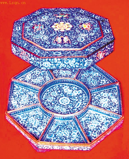 藏友是徽商后裔,家藏有一件铜胎画珐琅八方攒盒,是其太祖父吴亦炜从京城返徽州歙县昌溪老家祭祖时带回来的。清朝中期,吴亦炜在北京经营久著声誉的“吴德丰茶庄”,他不但是一位贾而好儒的徽商,而且兼任朝廷命官布政司理、儒林郎、朝仪大夫等职。听其父辈说,这只传承有序的铜胎画珐琅八方攒盒每逢祭祀节日,家人都要取出擦净,置放祭品摆放在列祖列宗容像前,作为祭祀祖宗的供器,十年浩劫中险被砸烂。