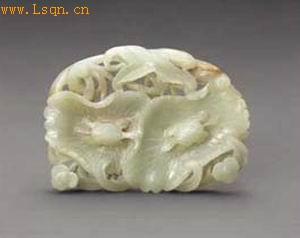 佩为青玉质,温润细腻。一块玉料对剖制成。以浮雕、透雕技法琢出荷叶、茨菰及水草纹,单阴刻线示叶脉,纹理清晰。荷叶中心各凸琢一只伸头相向爬行小龟,以双阴刻线琢出六角形甲纹。背面仅以粗犷的刀工琢刻出枝梗。古代将这种纹饰称为"龟游",寓祥瑞之意。这对玉佩构思严谨,造型生动,镂刻精细,抛光极好。据墓志知墓主为乌古论窝论,葬于金大定二十四年(1184),距今有八百余年。这是北京地区首次发掘的有明确纪年的女真族贵族墓,它是研究金朝历史和玉器发展史极难得的珍贵实物资料。