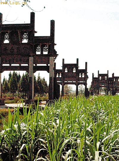 ■徽商除了发财,也有出资鼓励乡里孝行。图为安徽歙县棠樾村牌坊群。(资料图片)
