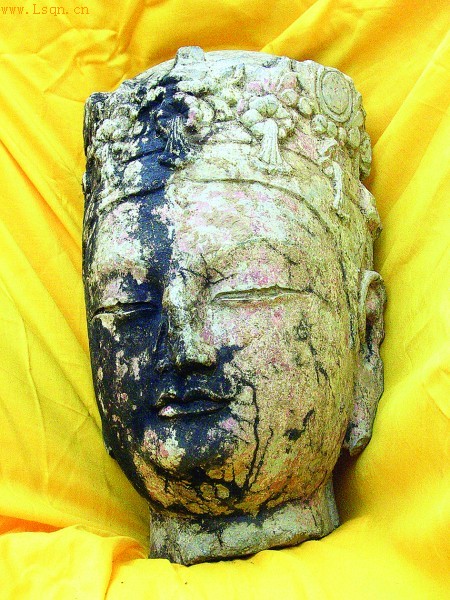 县西巷工地出土的北齐菩萨头像。摄影/王晓明