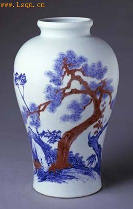 清 青花釉里红松竹梅纹瓶
