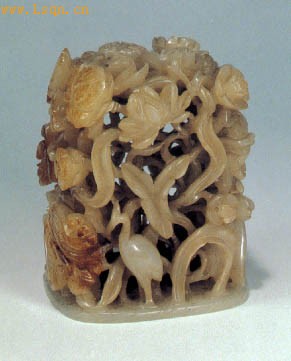 炉顶系用多层透雕镂刻而成。由莲叶、莲瓣、莲篷、苇叶、水草、鹭鸶组成。整体造型似馒头状高高隆起,表面雕饰起伏,手摸立面有高低不平、参差不齐的感觉,这是元代炉顶制作风格上的重要特征。