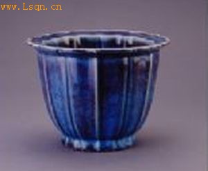 高20厘米、口径26.7厘米、底径14厘米。 此盆是清御窑厂仿宋代钧窑花盆而烧造。督陶官唐英在任期间,于雍正七年曾派其幕友吴尧圃到河南均州钧窑瓷器产地调查钧窑器釉料配制法,故所仿钧窑器可与宋钧媲美。