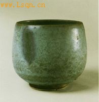 高16.8厘米、口径16.5厘米、底径10.3厘米。 敞口,弧腹,大圈足,足底露胎,整体素面无纹饰。釉色为天青色,施釉肥厚,釉汁浑厚浓润,腹部有一窑变铜红釉,有明显的釉质流动纹路。器型设计为曲线轮廓,没有复杂的曲线转折,显得朴素大气。是元代普遍使用的日用器物,反映了元代内蒙古地区使用钧窑瓷器的普遍性。