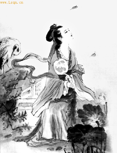 团扇又称绢宫扇、合欢扇,本是西汉时期嫔妃仕女的饰品。然而在以后历代,团扇几乎成为红颜薄命、佳人失爱的象征。唐代诗人王建有词曰:“团扇,团扇,美人并来遮面。玉颜憔悴三年,谁复商量管弦?弦管,弦管,春草昭阳路断。”至于团扇怎么与凄楚悲凉的人生境遇有了关联,这大概要从汉宫才女班婕妤说起。