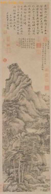 本幅自识:“夏日山居。戊申二月黄鹤山人王叔明为同玄高士画于青村陶氏之嘉树轩。”戊申为元至正二十八年(1368年)。另有清乾隆帝诗题并钤印及清安岐、乾隆内府等鉴藏印共17方。