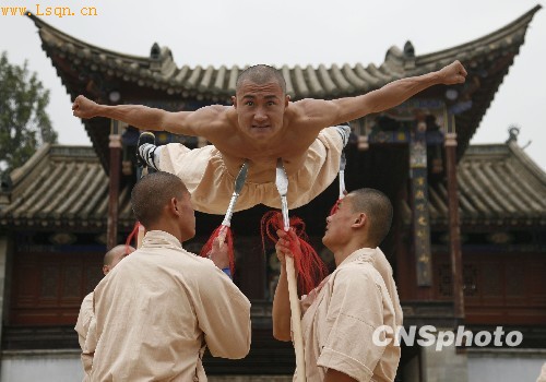 资料图:少林寺武僧展示少林功夫。中新社发 刘冉阳 摄