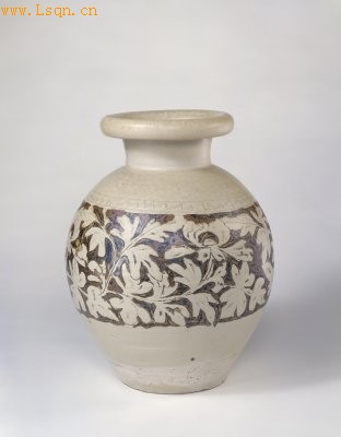 辽 赤峰窑白釉划花填黑彩牡丹纹尊