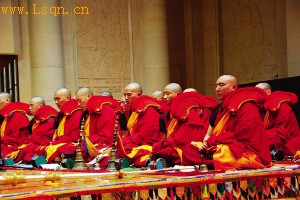 从宗然那西日大师主持在壤巴拉的大草滩上建造起壤塘寺,经杰瓦僧格、罗主南甲、阿旺·丹增南甲、云登桑布、嘉阳乐住等觉囊派大师的继往开来,生生不息,脉脉相续,觉囊“梵音古乐”保存了最完整的传承。觉囊“梵音古乐”活态传习乐舞师有金刚唱诵师、法号(铜钦)师、唢呐(甲林)师、乐舞(羌姆)师、法螺(统嘎)师、法铙师、胫骨号(冈林)师、法钹(布切)师、法鼓师、法铃(止布)师、法杵(多吉)师、嘎玛拉鼓师等。觉囊梵音古乐所要表达的是生命内在的智慧与慈悲,强调自然、清净、空灵的声音。正因为如此,对于参加功课的每一位乐僧的要求是相当高的。所有的领唱都接受了严格完整的学习,乐器的演奏者都经过 10年以上的演奏、唱诵练习;每一位参与展示者都完成了佛法五部大论的系统学习,每一位乐僧至少进行了6年的闭关禅修,在佛法方面具有相当高的造诣。许多古代音乐随着时间的流逝而“变味”或黯然退出历史舞台,但觉囊梵音古乐却传延千年,活态传承得相对完整,几乎未受到现代文明的冲击和世俗浸染,原因何在?嘉阳乐住法主认为,这归功于僧团这一文化载体,“觉囊梵音古乐迄今承传体系从未间断,是因为在历史上的任何时期,许多‘勇士’为了活态传承文化,用生命坚守、捍卫和弘扬,觉囊梵音古乐今日才得以如此健全、圆满、殊胜。”