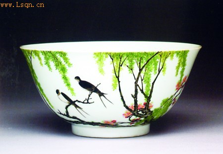 清雍正珐琅彩柳燕纹碗