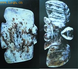 1993年在阜新市蒙古族自治县化石戈乡胡头沟遗址中,出土了“玉鸟”(上)和“玉鸮”(下)。原阜新市文化局分管文物及考古的副局长张正提出,“玉鸟”就是凤凰的雏形。记者 蔡红鑫 翻拍