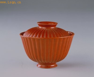 清乾隆 仿朱漆菊瓣式盖碗