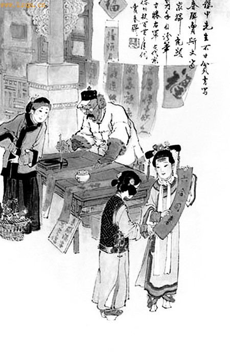 古代风俗百图——卖春联(清) 王弘力作