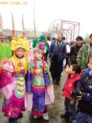 庙会上两位身着戏装的小学生