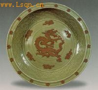 元 龙泉窑青釉龙纹大盘