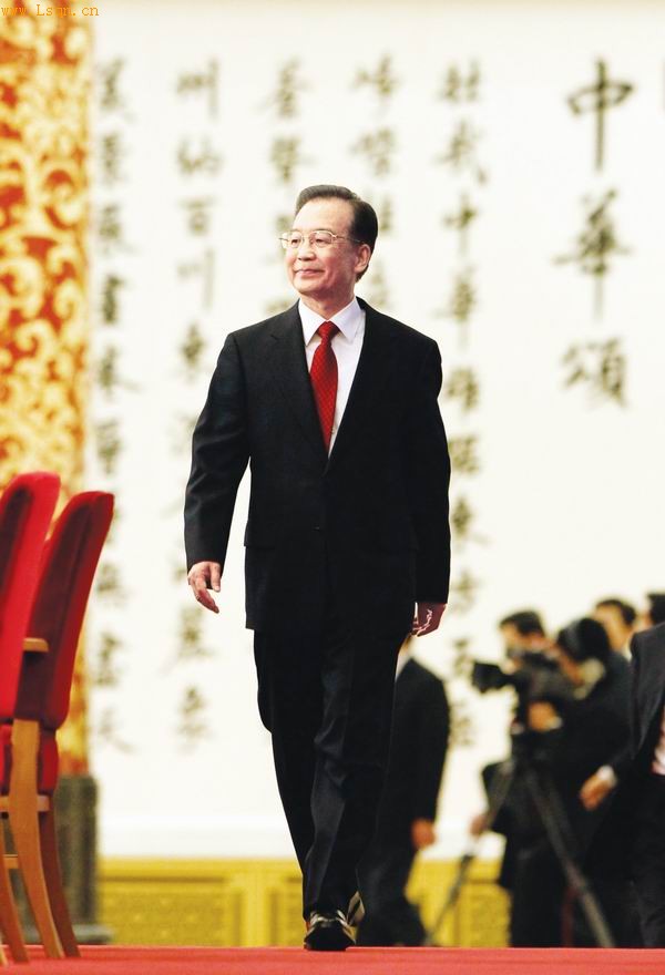 温家宝总理步入金色大厅与中外记者见面