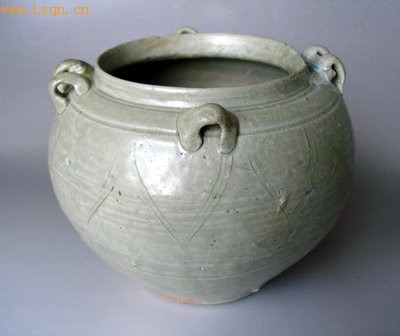 越窑莲纹六系罐(南朝)